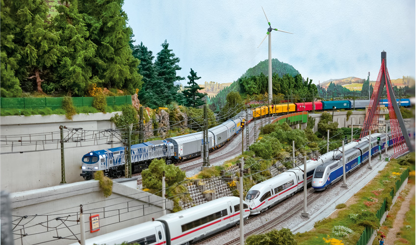 Nur wenige Modellbahner haben Platz für eine mehrere Meter lange schnurgerade Neubaustrecke (NBS) und zusätzlich daneben noch für eine weitere doppelgleisige Paradestrecke für Regional- und Güterzüge. Richard Rottenbucher berichtet, wie er diese auf dem schmalen Schenkel seiner Epoche-VI-Großanlage geplant und gestaltet hat.