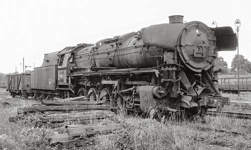 Bahnbetriebswerk Nordhausen der DR, Frühjahr 1967: Nach wie vor sind hier viele Dampflokomotiven beheimatet, am stärksten vertreten ist die Baureihe 44 mit 19 Exemplaren, davon elf mit Öl- und acht mit Kohlefeuerung. Neben ihrem kräftezehrenden Einsatz im Ost-West- Verkehr nach und von Halle (S) haben sie auch Leistungen im Nord-Süd-Verkehr nach und von Erfurt zu erbringen.