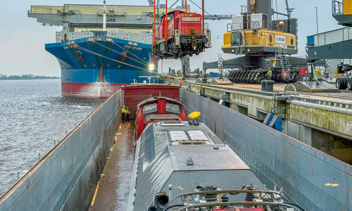 Nach der Kollision des niederländischen Frachtschiffs „Rapida“ mit der Huntebrücke in Elsfleth an der Strecke Hude – Nordenham (KBS 391) traten Anfang März 2024 sieben auf der Strecke eingeschlossene Lokomotiven kurzfristig eine ungewöhnliche Reise an – nämlich per Schiff über die Weser.