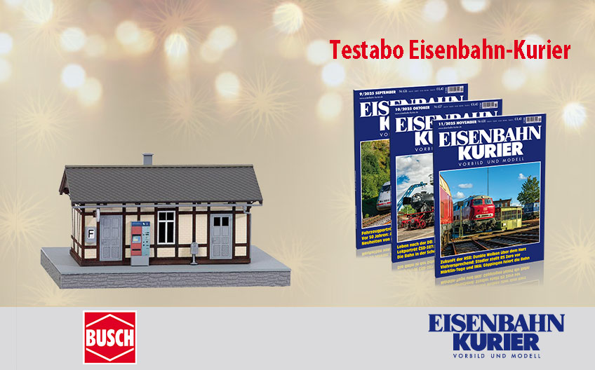 - Testabonnement mit drei aktuellen Ausgaben des Eisenbahn-Kuriers plus einen EK-Thermobecher